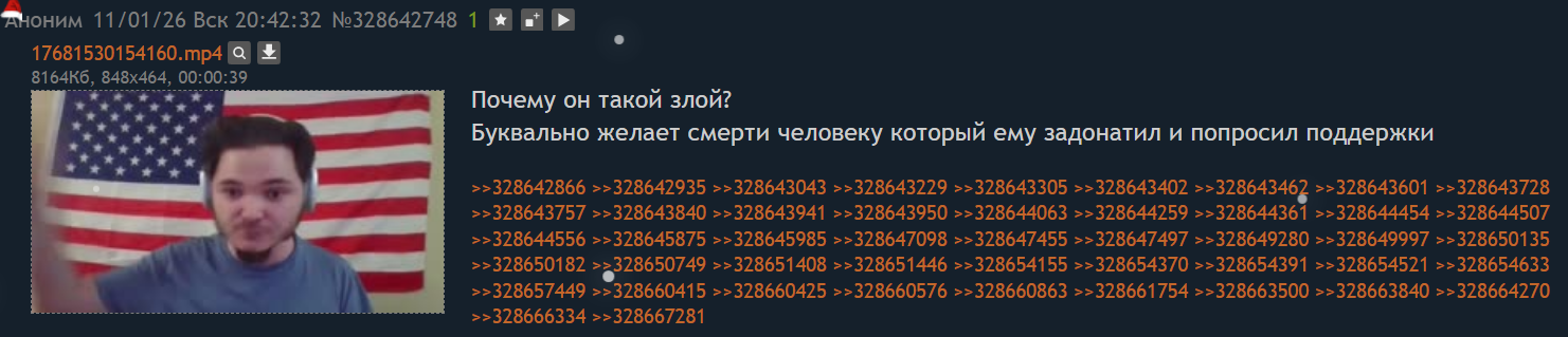 Тред нищего 33-летнего инцела педофила, живущего с родителями, который срёт в голову своим зрителям, отправляя их на верную смерть.