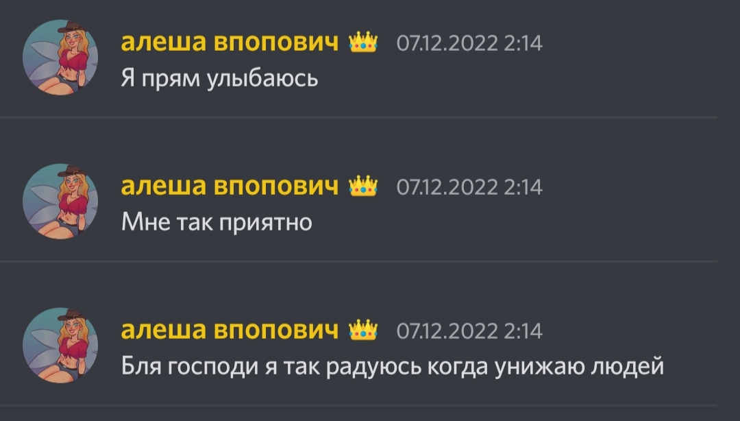 Это мощный даунгрейд, Толь. Ты накопи нормально, поголодай там, и снова съезди к проститутке в Волгоград и наделай новых фоток. А то текстовые пуки в тг совсем жалко выглядят на фоне твоих предыдущих ирл шлохо-перформансов.