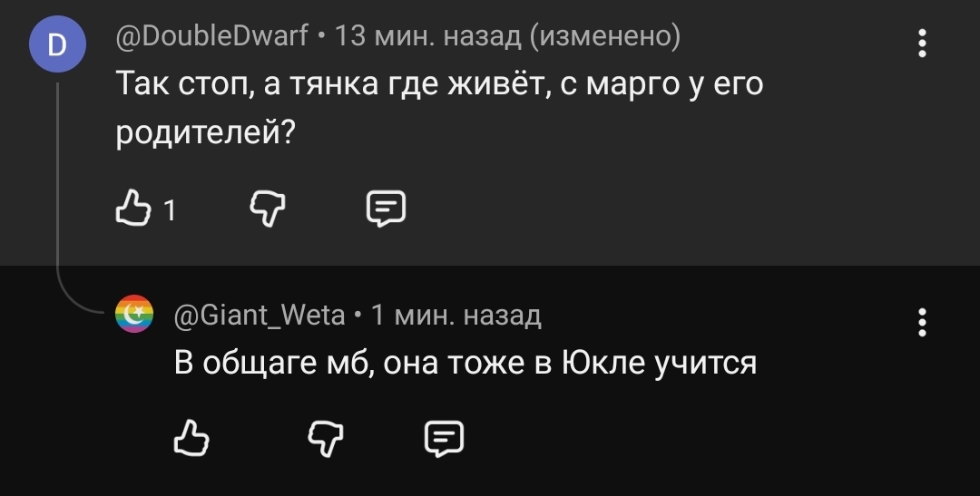 Короче теперь Куколд выбрал тактику делать вид, что его жизнь с родителями это типа шутка, которую все газонюхи должны повторять. Ну типа как когда Мэддисон жил с Занудой и говорил, что это его сестра. Идентичная же ситуация, разве нет?
