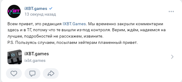 От мувов деда и ко бомбят только квасная вата, и что-то там пытается кукарекать. Все остальные - улюлюкают и закидывают землю на могилу репутации ixbt. Они всех заебали.