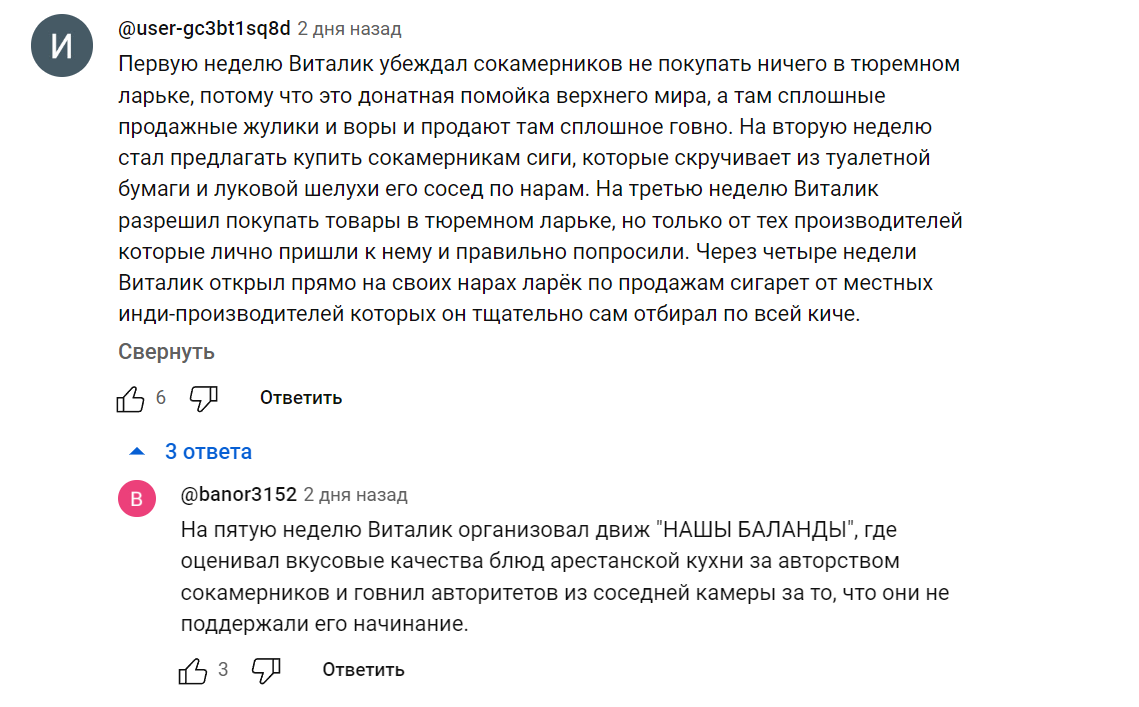 Чувак задонатил по-моему 1к грина на какую-то инициативу. Его задержали по-моему году в 22. Развели на продажу и донат 750к крипты в пользу мусоров. Вроде откупился. Спустя пару месяцев его опять взяли за тоже самое, только посадили уже на 3 года. Сейчас ему за тоже самое шьют уже 15 лет. И это нихуя не публичная личность. Ни на какие сделки с бел мусорами нельзя идти по той простой причине что они наёбывают в 100% случаев. Наверное только протасевича по итогу выпустили, хотя его пиздили 3 и фактически прошлись катком (скорее всего его кгб от ментов дефает). И то, я уверен что к нему приставлено 2-5 кгбшников на ближайшие лет 10. Чтобы не дай бог не съебал из страны для жизни. Вот и думай теперь какое будущее у виталика в Беларуси. Я уверен что и мишаню в случае чего могут за сраку взять, если виталик съебёт и будет слишком громко поливать помоями луку.
