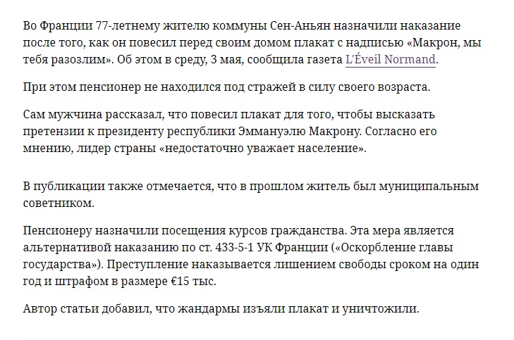 >>865804 >>865814 >>865824 Хуя чекистская собака разгавкалась. >В 2024 году пиздеть про "законные" протесты только имбецил будет >в тех же гейропах с муриками А в гейропах с муриками как раз сейчас законные протесты, вот-вот Техас отвалится, фермеры Германии и Франции бунтуют не один месяц, а чтоб жёстче пиздили надо жёстче протестовать, я думаю тебя бы инфаркт жопы хватил, если твоему начальнику говна в кабинет залили, а охуевшей мусорне прилетело арматурой, но остаётся главная загадка - а там кто печеньки раздаёт??? И да, законный, это не по букве закона чекистской хунты, а по праву на восстание.