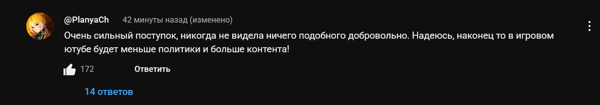 Каждый из крупных игровых каналов кто подошел и отметился, кусанул так сказать пока представилась возможность (Унылый, и тебе привет) так или иначе связаны общими взглядами, не просто граничащими, а полностью перекликающиеся с русофобией, заявлениями, намеками в каждом втором видосе. Нужно ли тащить пруфы, учитывая как насрали здесь их зрилы?