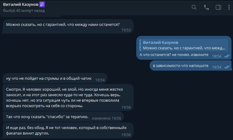 Но Виталя побежал по личкам унижаться. Жалкое зрелище. Зачем? Через неделю бы все забыли, всплыл бы новый косяк про казиныча47/беса, и инфополе бы забилось.
