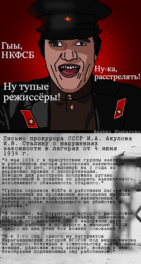 >>902862 >Может, ему еще предъявить, что он неразрешенное КГБ кино котирует? Ему и предъявляли. Смотрит всякую бездуховщину, разлагающую молодёжь, в которой пропагандируется насилие, пошлость и капитализм. В СССР такой хуйни не было! Нам нужна жёсткая цензура, как при товарище Сталине.