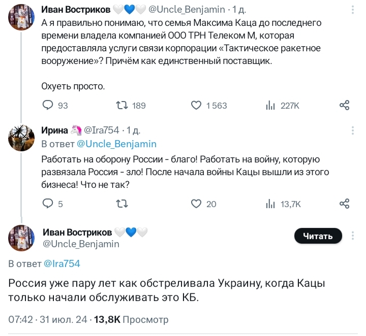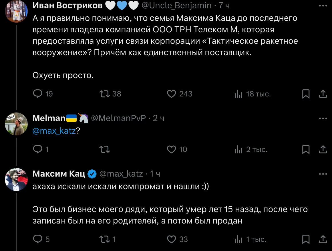Один битки от апшечки скорее всего получает на развитие своего zми, у второго родственники на оборонку работали, а жена контракты от Альфы и Сбера получала.