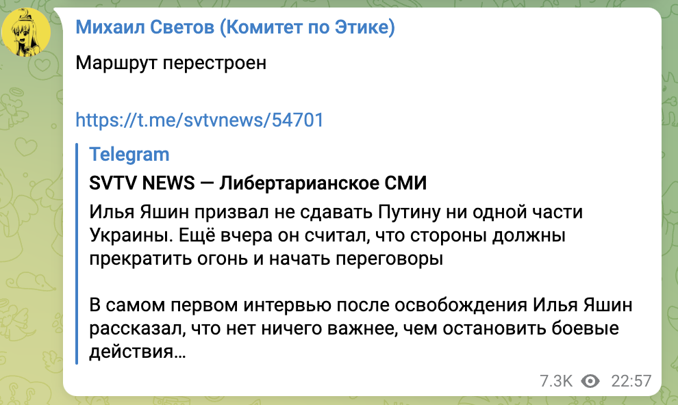 Блять "сми" педофила буквально неотличимо от кремлевской пропаганды. Постоянная борьба с Майклом Наки, трансгендерами трудовиками на олимпиаде, и рассказами как всу обстреляла очередной сарай. Это же блять противоречит самой сути либертарианства. Как можно создавать либертарианское сми, которое действует исключительно в интересах режима, которому должно противостоять. Это просто сюр.