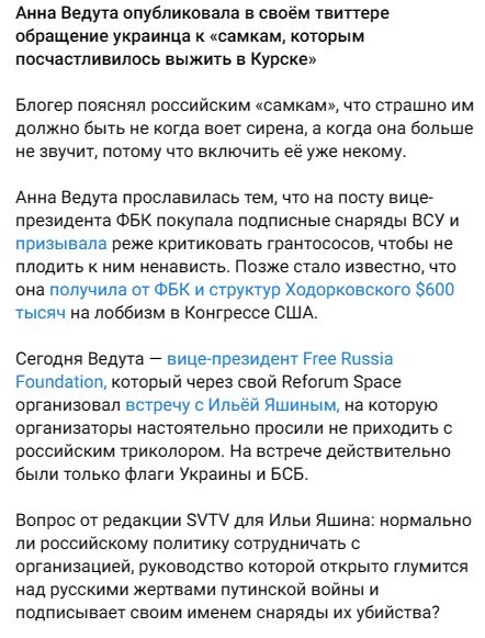 Вот это забавный визг, конечно. И как интересно получается с учетом того, что Ведута активно в конгрессе США лоббировала санкции против пыневиков, в том числе по списку 6000 Навального.