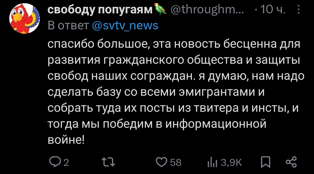 >>937430 Ещё раз: стукачество (ох уж эти хипстеры-отрицалы с уголовной моралью) это тайное донесение приватной или секретной информации. В случае свтв это освещение доступной публично инфы, а конкретно лицемерных и безапелляционных утверждений и поведения. Первоисточником вообще является зевилладж, где публиковался текст от первого лица и фото в полный рост. Пиздоболы просто так нервно реагируют на рост гражданского самосознания и восстановление института репутации.