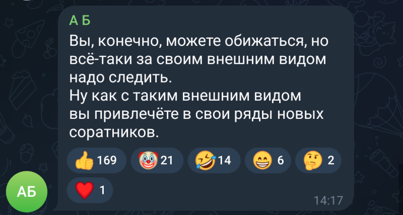 феноменальный уровень дискуссии, а комментарии в тг еще более шедевральные.
