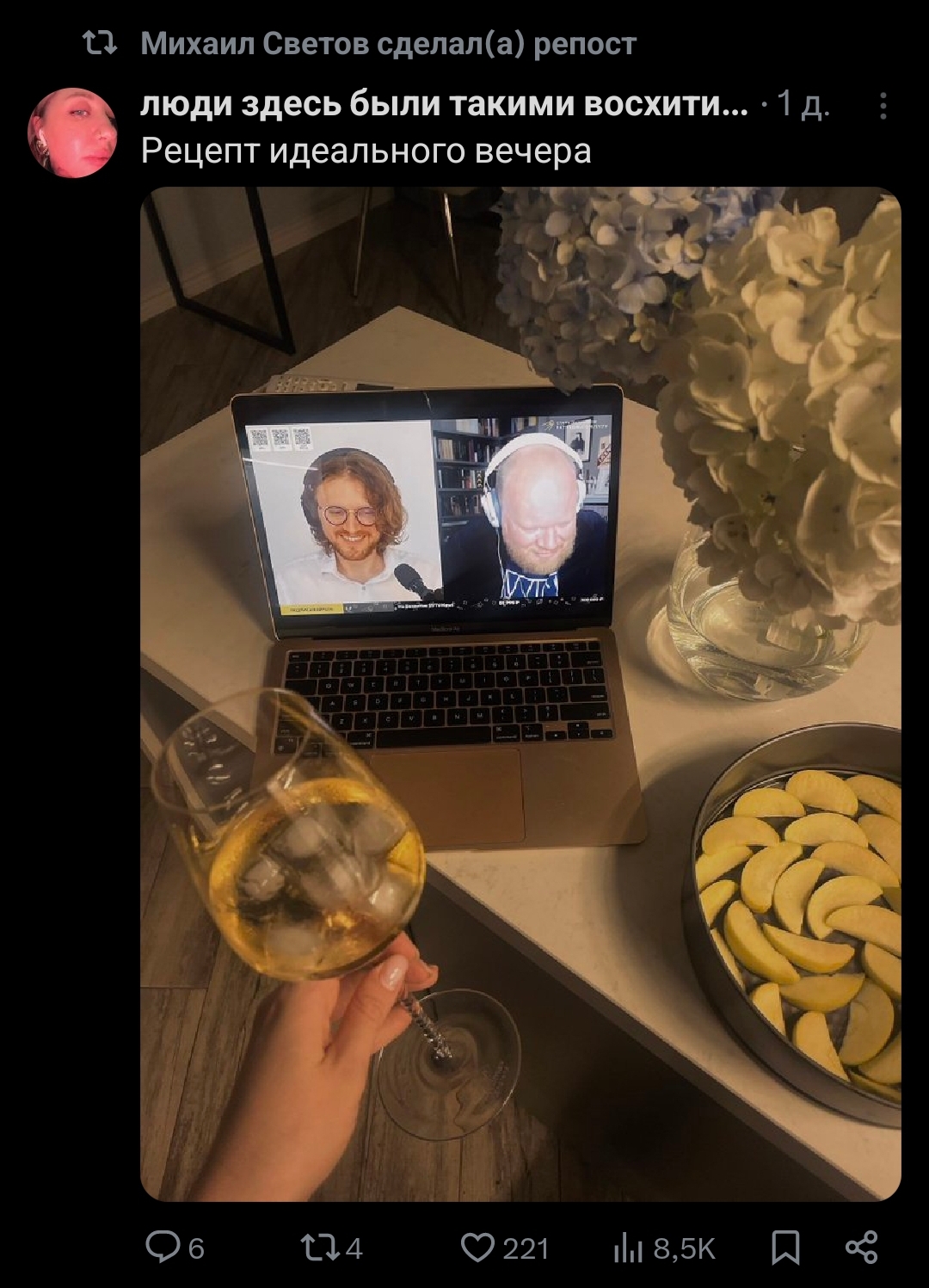 Михаил Светов и Максим Кац выпивают дорогое шампанское. Кто-то совершил самоубийство.