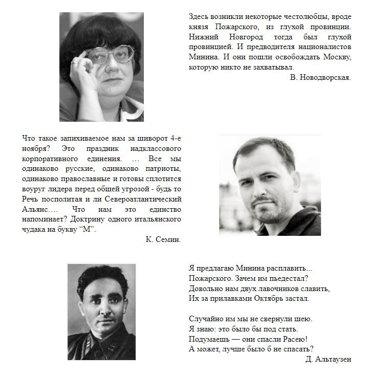 Самая же роковая черта всего этого века, которую можно отнести за счет все увеличивающегося еврейского влияния, заключалась в том, что часто либеральная, западническая или интернационалистическая фразеология прикрывала антинациональные тенденции. (Конечно, вовлеченными в это оказались и многие русские, украинцы, грузины.) Тут - кардинальное отличие от французской революции, в которой евреи не играли никакой роли. Там "патриот" - был термин, обозначающий революционера, у нас - контрреволюционера, его можно было встретить и в смертном приговоре: расстрелян как заговорщик, монархист и патриот. И в России эта черта появилась не сразу. В мышлении Бакунина были какие-то национальные элементы, он мечтал о федерации анархически-свободных славянских народов. Та приманка, которая заманивала большинство молодежи в революцию, была любовь и сострадание к народу, то есть тогда - к крестьянству. Но рано началась и обратная тенденция. Так, Л. Тихомиров рассказывает о В. А. Зайцеве: "Еврей, интеллигентный революционер, он с какой-то бешеной злобой ненавидел Россию и буквально проклинал ее, так что противно было читать. Он писал, например: "сгинь, проклятая". О Плеханове Тихомиров пишет, что он "носил в груди неистребимый русский патриотизм". И вот, вернувшись после февральской революции в Россию, он обнаружил, что его былое влияние испарилось. У Плеханова просто не повернулся бы язык воскликнуть, как Троцкий: "Будь проклят патриотизм!" Это "антипатриотическое" настроение господствовало в 20-е и 30-е годы, Зиновьев призывал тогда "подсекать головку нашего русского шовинизма", "каленым железом прижечь всюду, где есть хотя бы намек на великодержавный шовинизм"; Яковлев (Эпштейн) сетовал, что "через аппарат проникает подлый великодержавный русский шовинизм". Что же понималось под "великодержавным шовинизмом" и что означала борьба с ним? Бухарин разъяснял: "... мы в качестве бывшей великодержавной нации должны (...) поставить себя в неравное положение в смысле еще больших уступок национальным течениям". Он требовал поставить русских "в положение более низкое по сравнению с другими...". Сталин же раз за разом, начиная с Х съезда и кончая ХVI, декларировал, что "великодержавный шовинизм" является главной опасностью в области национальной политики. Тогда термин "РУСОПЯТ" был вполне официальным, его можно было встретить во многих речах тогдашних деятелей. "Антипатриотическое" настроение пропитало и литературу. Безыменский мечтал: О, скоро ли рукою жесткой Расеюшку с пути столкнут?! Эта тема варьировалась до бесконечности : Русь! Сгнила? Умерла? Подохла? Что же! Вечная память тебе. Или: Я предлагаю Минина расплавить, Пожарского. Зачем им пьедестал? Довольно нам двух лавочников славить, Их за прилавками Октябрь застал, Случайно им мы не свернули шею. Я знаю, это было бы под стать. Подумаешь, они спасли Россию! А может, лучше было не спасать?