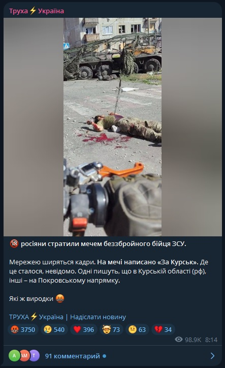 На фотографии трое мужчин в военной экипировке с оружием и синими повязками позируют на открытом воздухе, а позади них стоит бронемашина. "Ребята в Курске (имеется в виду Курская область)", - гласит подпись к фото, при этом геолокационные данные указывают на то, что публикацию разместили из Курской области. https://t.me/bbbreaking/188425