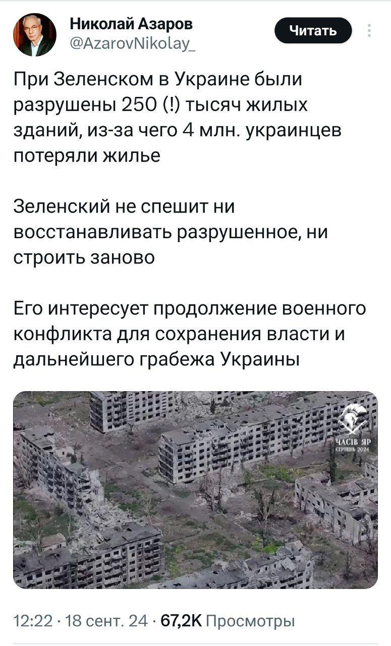 Сегодня, 30 сентября в нашей стране отмечается памятная дата -- День воссоединения Донецкой Народной Республики, Луганской Народной Республики, Запорожской области и Херсонской области с Российской Федерацией. В этот день 2022 года в Кремле президент РФ Владимир Путин, главы двух народных республик и двух областей подписали международные договоры о вхождении (правильнее сказать — возвращении) регионов Новороссии в состав России – по итогам проведенных ранее референдумов. А это значит, что столица моего региона - город Запорожье, а также Степногорск, Гуляйполе, Орехов должны быть освобождены от присутствия иностранных войск —украинских и натовских. Еще раз для тех, кто не понял главного: вся Запорожская область, все 4 региона Новороссии, вернувшиеся 2 года назад в состав России, должны быть освобождены в своих административных границах. И мы это должны понимать и знать как Отче наш ☦️. После того, что произошло 30 сентября 2022 года — юридически это снова наша земля и наш конституционный долг — освободить каждую её пядь. Теперь только так.