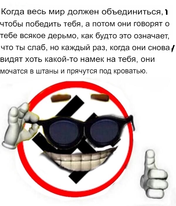 >>936347 Когда они пришли за Тесаком, я молчал: я же не был (((русским))) националистом. Когда они пришли за Кагарлицким, я молчал: я же не был рабкором. Когда они пришли за Поднебесным, я молчал: я же не был инцелом. Когда они пришли за псих+физ здоровыми мужчинами— заступиться за меня было уже некому...