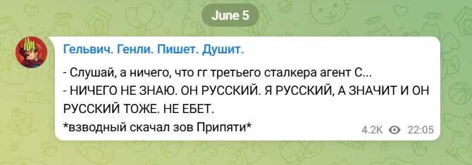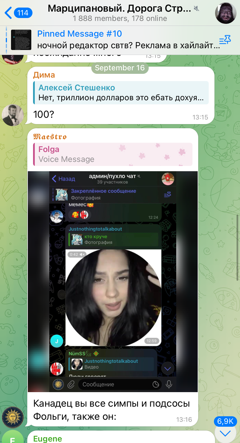 >>947167 ЛООООООЛ, то есть вся шиза про жену, про манхетен бич, про жизнь в америке это открытый паблик в телеге и все посты оттуда РЕПОСТЯТСЯ В СРИКЕР, АХАХАХАХАХА