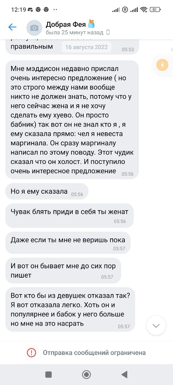 Тогда вообще теряюсь в догадках. Ситуация ещë более шизофреничная, в таком случае. То есть при всëм перечисленном здесь >>965552 + допуск сторонних упоминаний непонятно, по какой причине они фотографии только родителям отправляют, а она полезла в мае разбираться лично со Штрошерер, потому что та посмела публиковать доказательства совместной жизни с Артамоновым.
