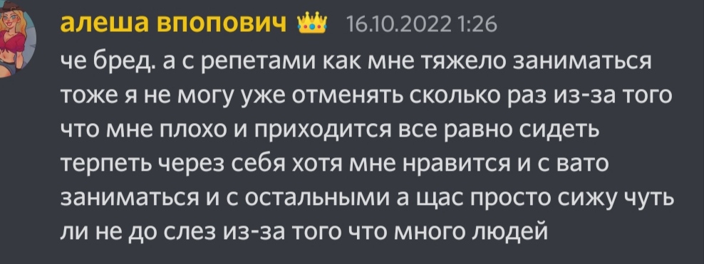 >>947298 > а теперь на дне своей карьеры с 300 зрителями Сегодня было 170 лол Мне кажется он на этом фоне и ебанулся окончательно, сначала от бана донатов, потом от того какие хохлы неплатежеспособные пока Жмиль купается в деньгах, потом от того что даже эти хохлы отваливаются и онлайн падает. И чтоб хоть как-то компенсировать этот хтонический пиздец он оставшиеся копейки платит Волгоградской шлюхе, чтоб она записывала кружочки про "мужа" и узбек довольный репостил это в Срикер.