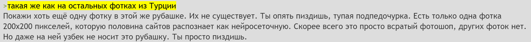 Столько стараний подпедочурки, а результат нулевой. Все видят, что нищий узбек живущий с родителями это нищий узбек живущий с родителями. Меняй тактику, газонюх, вайп её еблом никто за пруфы не считает.