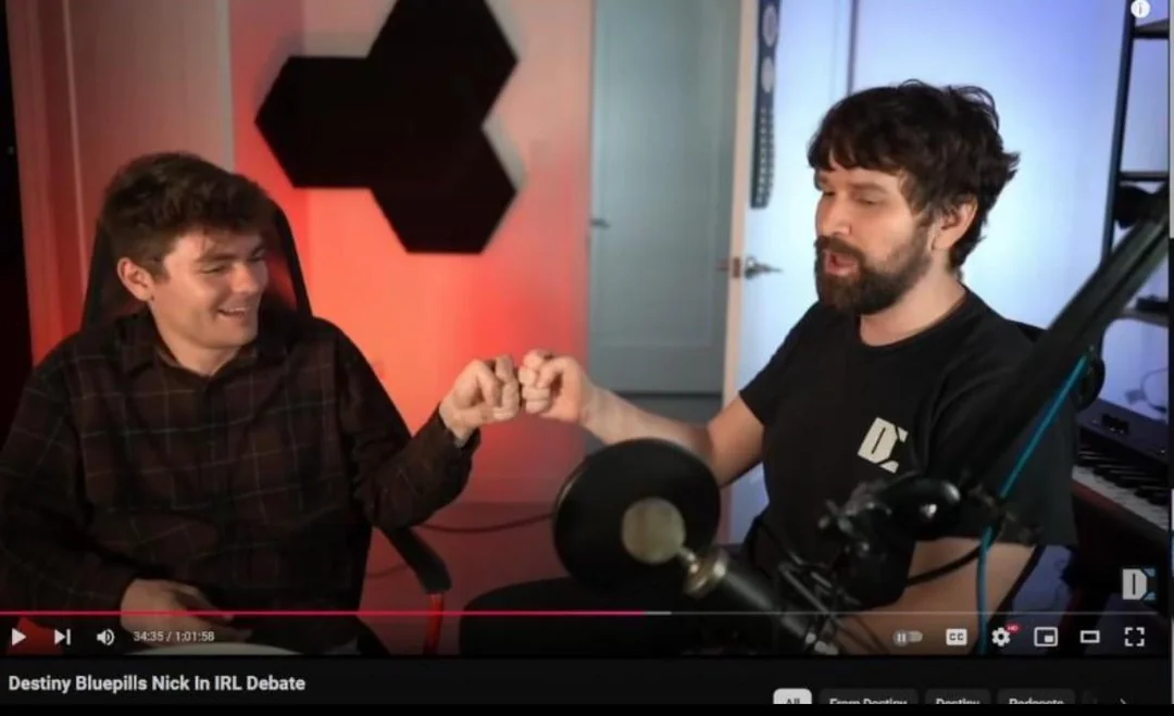 >топит за капитализм и приравнивает коммунистов к нацистам >топит за израиль и геноцид палестинцев >за вторую поправку >за обстрел BLM протестующих >до жопной крови дефал Кайла Риттенхауса >разосрался со всеми левыми блогерами >"дебатировл" с Беном Шапиро, где все 3 часа они друг с другом соглашались >приглашает к себе домой открытого неонациста и стукается кулачками >ебется с неонацистской Лорен Сазерн