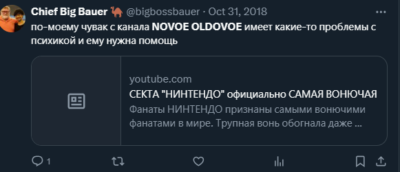 >>972048 > видос про колхозных русафобов шизов А такие есть, кроме Пеныча? Вообще он должен быть благодарен стримерам за упоминание его онлайн. Вчера Доку заказали его видос про Шталкер, тот еле вытерпел эту шизу про жирножопых скуфов. Сегодня ikakprosto его смотрит, судя по скрину выше.