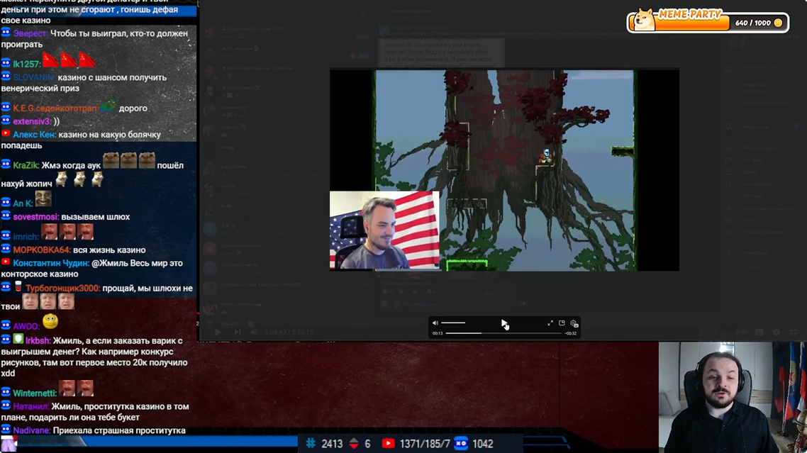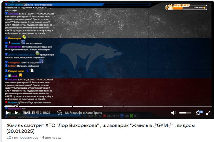кстати забавно, что аудитория Жмиля активно помогает ему в дойке зрителей на аук-казино. например на самарском аукционе часто бывает такое, что донатер хочет что-нибудь выкупить, но не делает это сразу, а ждёт пока другие люди просрут большие суммы и только потом выкупает. например донатят два человека на свои варики, соревнуются. каждый надонатил по 15к. и только после этого приходит 20к на выкуп. то есть мамонтам только в радость, чтобы деньги других мамонтов улетели в никуда, ну точнее в карман к Жмилю, который в них нуждается точно больше чем донатеры