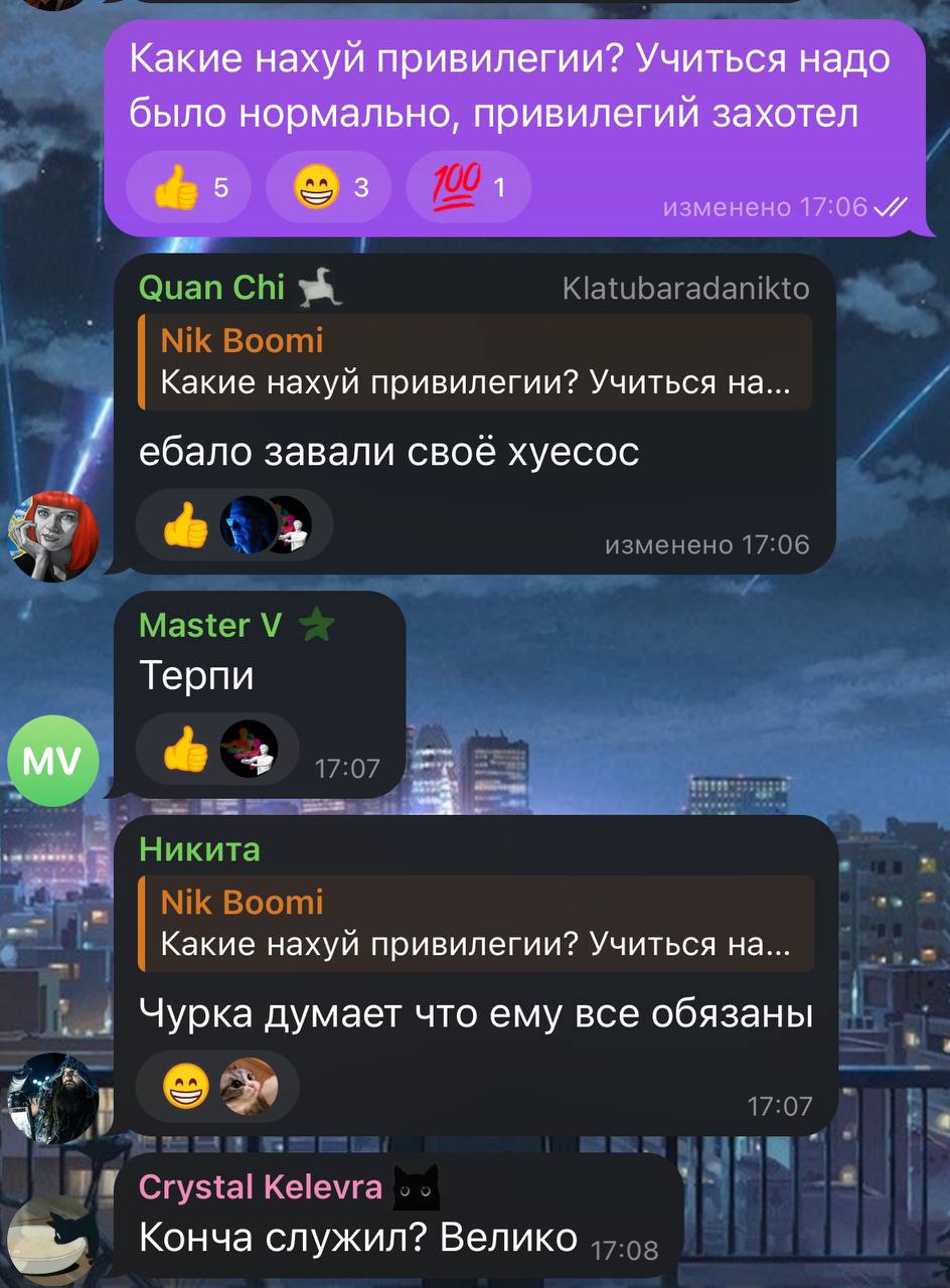 >>973163 Какая разница кто кого считает и что он там гонит, хоть пусть даже самого гонит. Донатер, кем бы он ни был предъявил чмилю по фактам, красиво спросил с него за предыдущий пиздеж и как вишенка на торте провел чмилю по губам за хуевый базар, о котором чмиленышь думал что все забылиа. И что донатер получил в ответ? лысого карлана пробило на паническую атаку и понос одновременно, хамство, переобувания и перевод стрелок как школьник как маминкин сынуля.