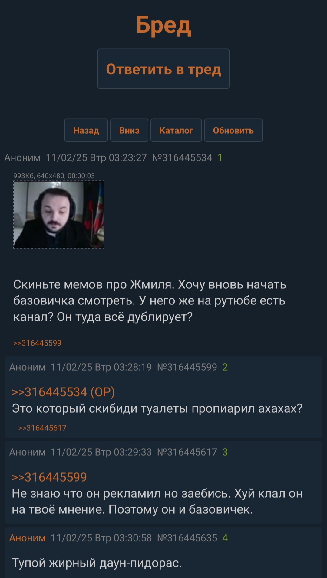 Тред обсуждения деятельности Владислава Дмитриевича Жмилевского, также известного как Жмиль, без тени сомнения самого эрудированного, последовательного, объективного и неангажированного политического стримера современности, готового вступить в спор с кем угодно и когда угодно. Одно только упоминание Жмиля вызывает анальный зуд у потерявших человеческий облик лицемерных приспособленцев, среди которых педокукич, хуесус, чмодье, и прочие.