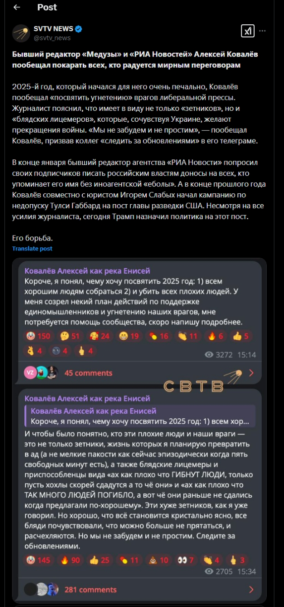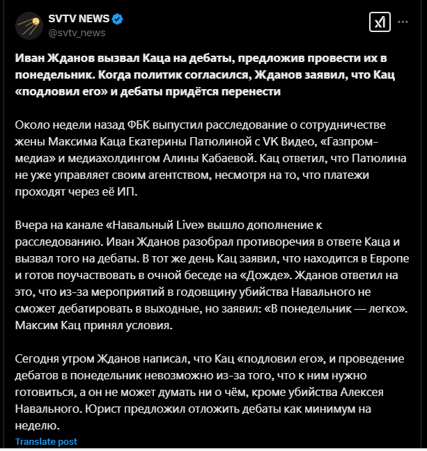 >>994917 нет, просто там теперь новый этап этого конфликта. теперь оказалось, что жена Каца сотрудничает с близкими к Кремлю структурами. главный политолог ПетрГУ внимательно занюхивает ситуацию и освещает её на стримах