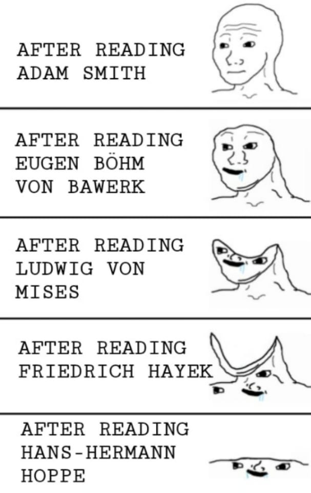>>973349 Может быть потому что левые идеи в корне неверны и противоречат догмам научного ленинизма? Вотличие от тебя-сектанта Даниил когда Ежи Сармат спросил его, допускает ли он что не прав в своей коммунистической агитации, Даниил ответил что он это допускает. Тебя же ничем не проймешь, ты так и будешь дальше верить в свои левацкие догмы не допуская даже на секундочку что левые идеи могут быть ошибочны, а корень твоих убеждений - ресентимент или зависть к успешным и трудолюбивым.