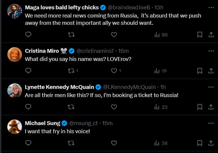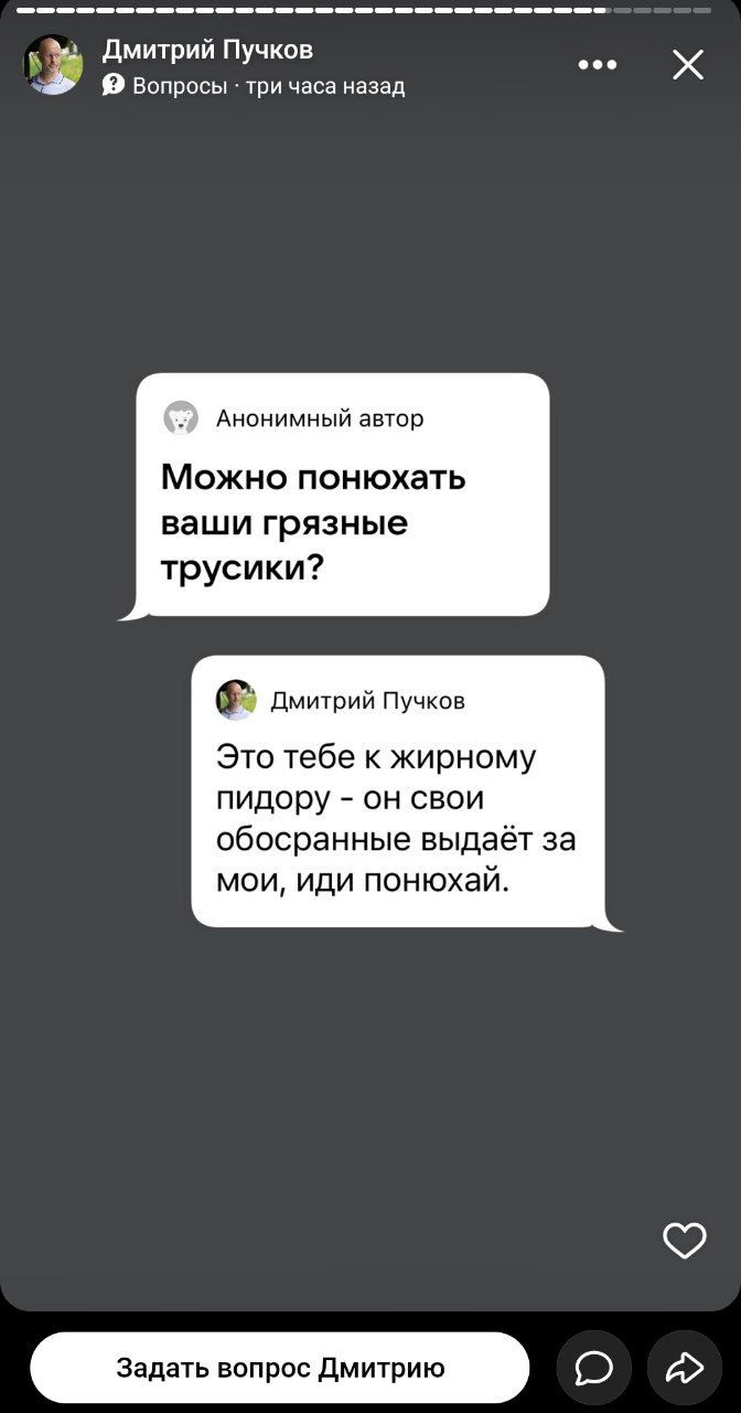 И поэтому он крутится и крутился в около-апшных кругах вроде Лазерсон, Каца, Светова, Маргинала и прочих подобных "оппозиционеров" и "борцов с режимом". Кого попало та же протеже Мединского и Венедиктова Лазерсон к себе не приглашает