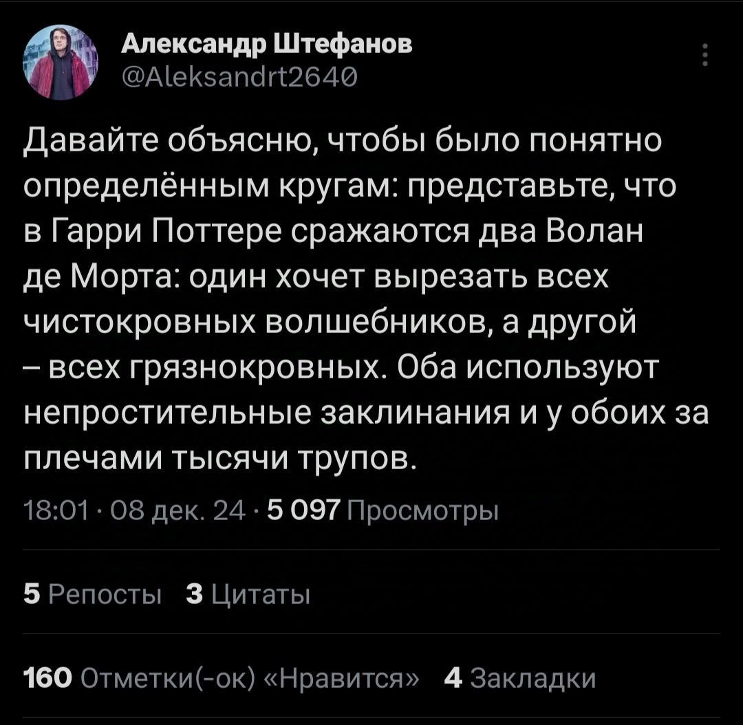 — Андрей прочитал Туленкова и очень впечатлился. В целом, ожидаемо: настоящему коммунисту поехавший экс-ваххабит ближе, чем русские.