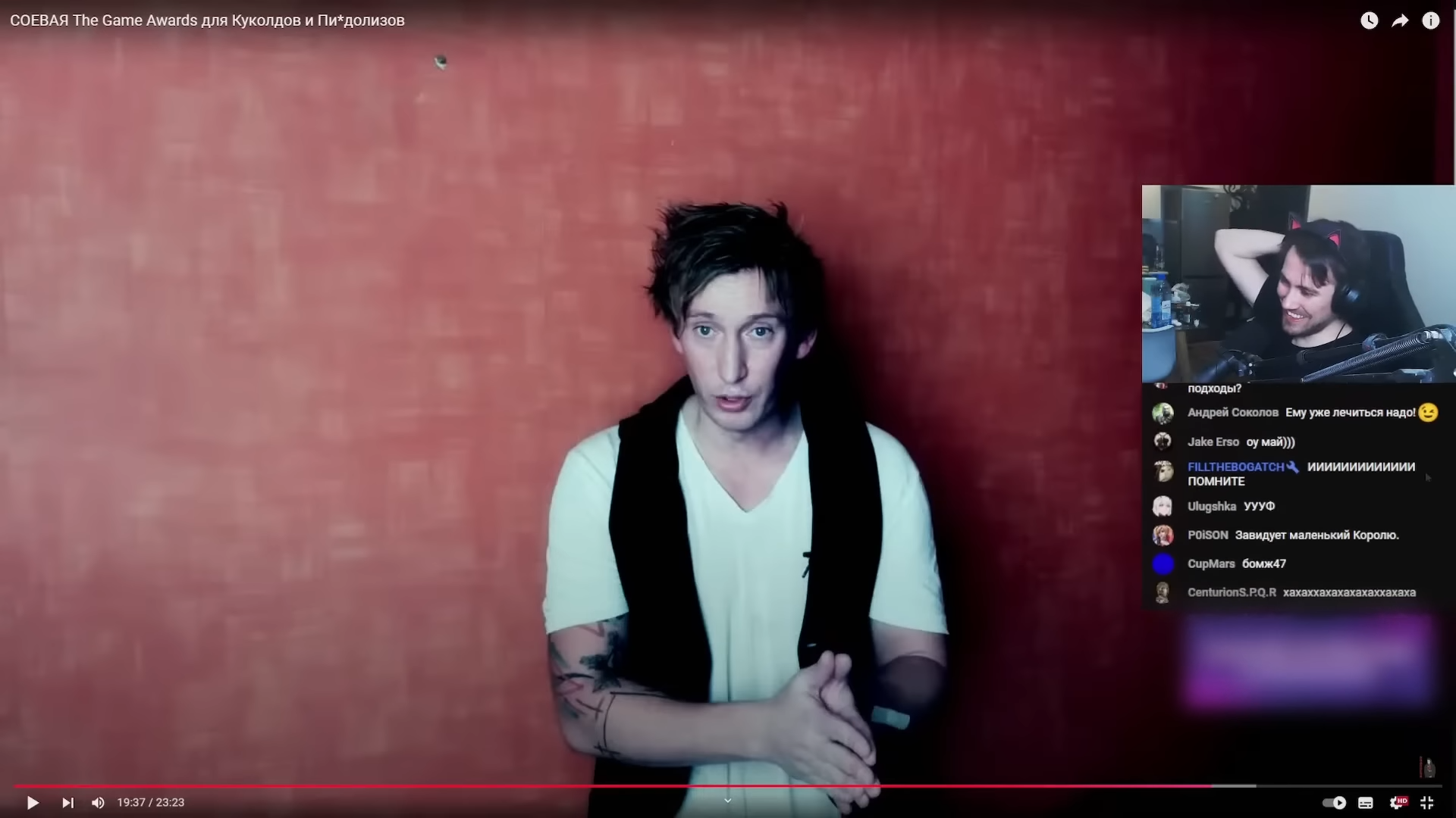 Что могу сказать по поводу последнего его высера. Наш поциент уже на грани. Ок вот смотрите, попадается кому то в рекомендации видео по теме The Game Awards и натыкается на нашего болезного. Новый зритель ожидает услышать какое то иное мнение, а вместо этого смотрит, как чувак, пытается самому себе доказать (попутно рандомному зрителю), что он в 40 лет ещё мужчина,(то есть ему даже не 60+ чтобы снимать подобное, то есть проблемы у него уже есть, в голове конечно же) снова задвигает про каких то жирножопых итд. Это знаете, вот приходит человек к психотерапевту и он ему жалуется, что его постоянно преследуют какие то виталямбы жирножопые но по сути они только в его голове, и только ему они мешают жить и он постоянно с ними борется.