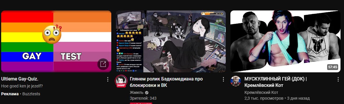 >>976293 Мне то пофиг на тга, я в принципе никогда его не смотрел, только на перемотке за 3 минуты у какого ни будь обзорщика в 2-х словах. Но с ряканьем по типу -я лучше у бориса отсосу, он красивый. Тебе точно нужно к врачу