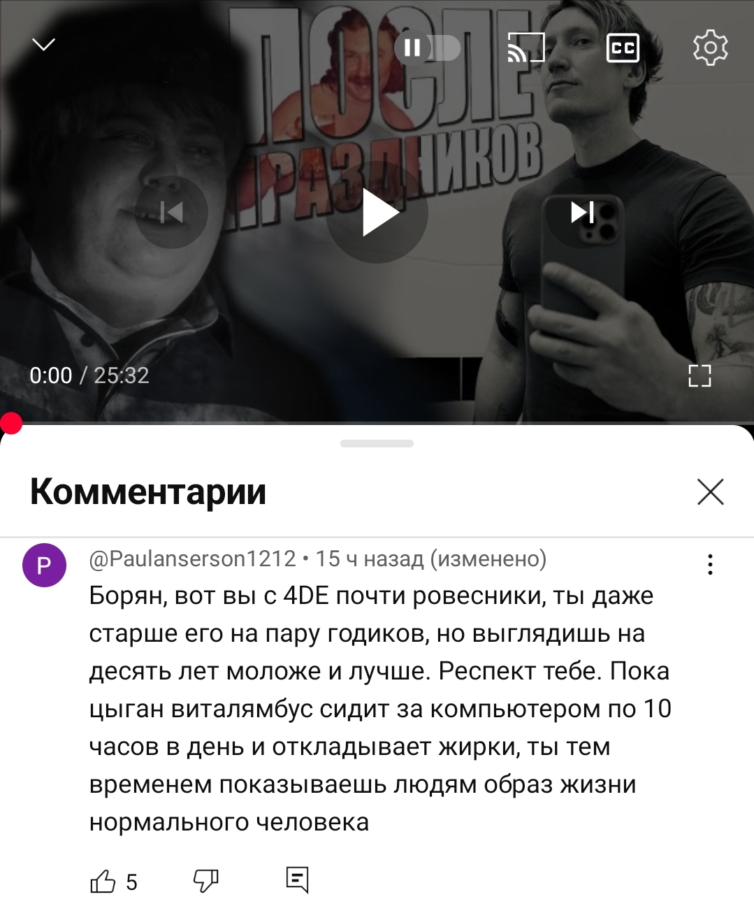 Едем дальше, разговоры про то что я мужик отличающийся от бабы, гормоны там хуёмое, я создан чтобы трахать бла бла. Я бы конечно хотел бы увидеть реакцию его бышей бабы на это. Потом значит, что он весь из себя такой мужик что он не будет играть за бабу вся хуйня. То есть столько пиздежа в одном ролике,я щас не буду даже говорить про ТЛОУ, вы сами всё поняли. То есть, что я понял, у него теперь появилась какая злоба на женский пол, очевидно же, наша нарцистическая принцесса, уже настолько поехала крышей, что нормальные бабы уже просто не хотят с ним иметь ничего общего. То то он такой весь из себя одинокий волк, грибочки там лесок, огородик. Нет Боря, ты просто нахуй никому стал не нужен, имею ввиду женский пол, а остальным на тебя просто похуй. Но ты настолько уже сел в лужу, причём тобой же наполненную, что выбраться тебе из нее будет тяжелее чем что либо. Ты просто не понимаешь одного, с каждым разом ты всё более прогрессируешь в своей закрытости, да да именно в закрытости и злобе.