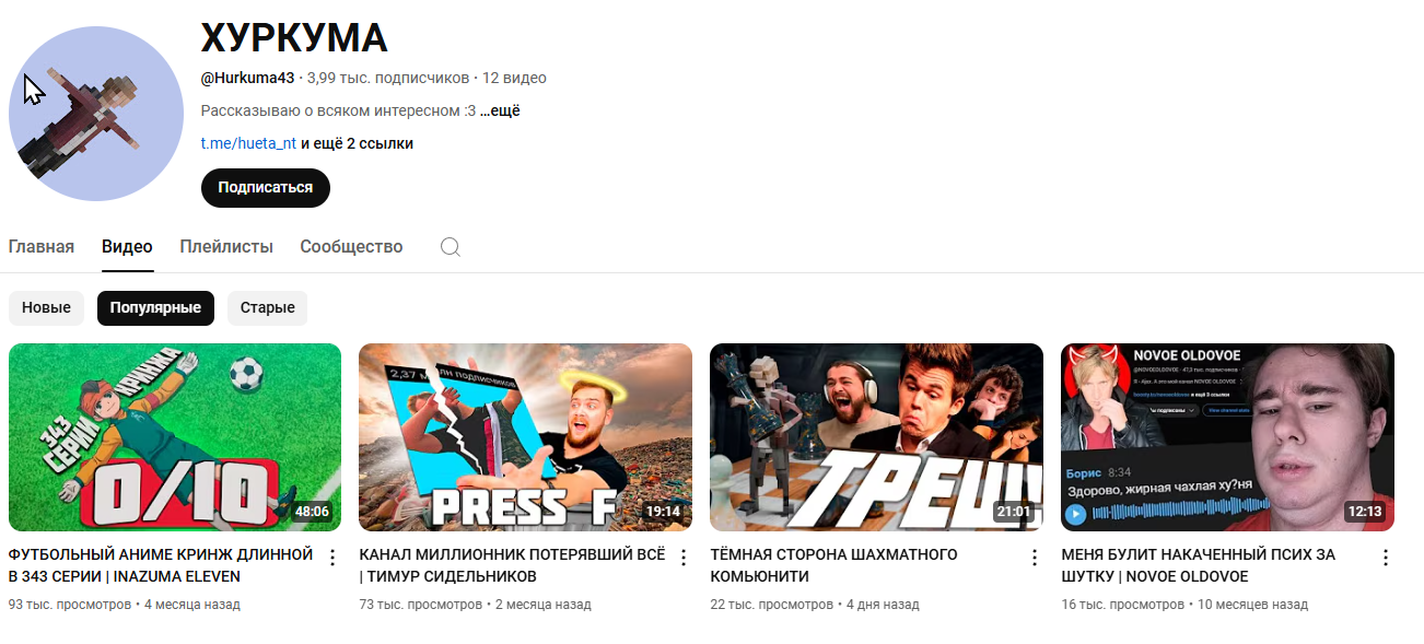 У Харчка модный развлекательный слоп брейнрот контент который так нравится вырожденцев. У него хорошая просматриваемость видосов и его чаще пихают в рекомендации. Если вырожденец попадёт на видео Бориса, то он выключит сразу как его назовут вырожденцем или Борис покажет свой богоподобный пресс.
