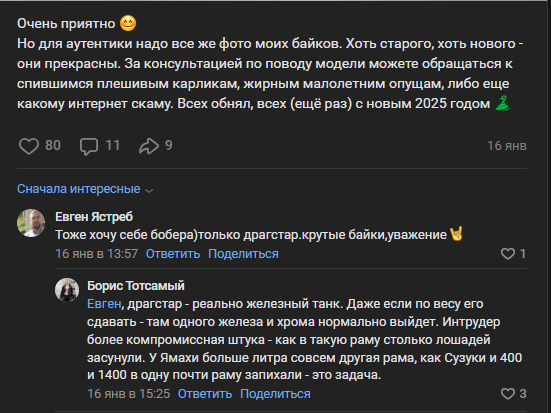 А теперь посмотри на пики. Мужичок работает электриком в небольшом городе на Урале. Живёт в частном доме, +- возраста пены, женат на красивой женщине. В гараже у него стоит ЛУАЗ, самодельный трёхколёсный мотоцикл с телегой и какой-то китайский апгрейженный мотоцикл для езды по говнам. Чел катается с друзьями по округе. Рыбачит, отдыхает, копает металл и старину. Вот это вот жизненно. А у пенкина дешёвая показуха.