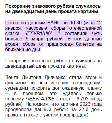 >>1045167 Ну вообще да, чебурашка норм. Единственный его доеб был по поводу мотивации гг, но в чем проблема, если в итоге посыл фильма получился правильным? Не стоит забывать, что целевая аудитория этого фильма - это те, кому не больше 10 лет и им нужно мораль и мотивацию пихать максимально в лоб.