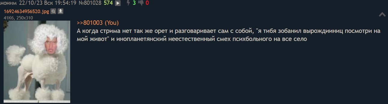 >>990785 (OP) Ребят, всем ку, это Майз (жирножопый вырожденец) Мб я и кринжовый, но прошу вас помочь для видоса. Нужна инфа о Борисе про то, как его один иксбоксер звал на стрелку, а он отказался, или что-то подобное. Крч все его такие случаи.