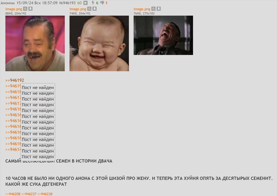 >>993168 Сыглы+++ кста. Я ни над одной смертью на протяжении всех 3 лет не смеялся. Так было, улыбнусь, когда проскочет новость, что очередного иностранного наемника поместили в землю. Но украинским смертям никогда не радовался и тем более не смеялся. А тут меня на целый день порвало и я кекал с каждого мема. Вот бы еще кто-нибудь из его знакомых там помер. Это бы очень помогло победить Путина депрессию.