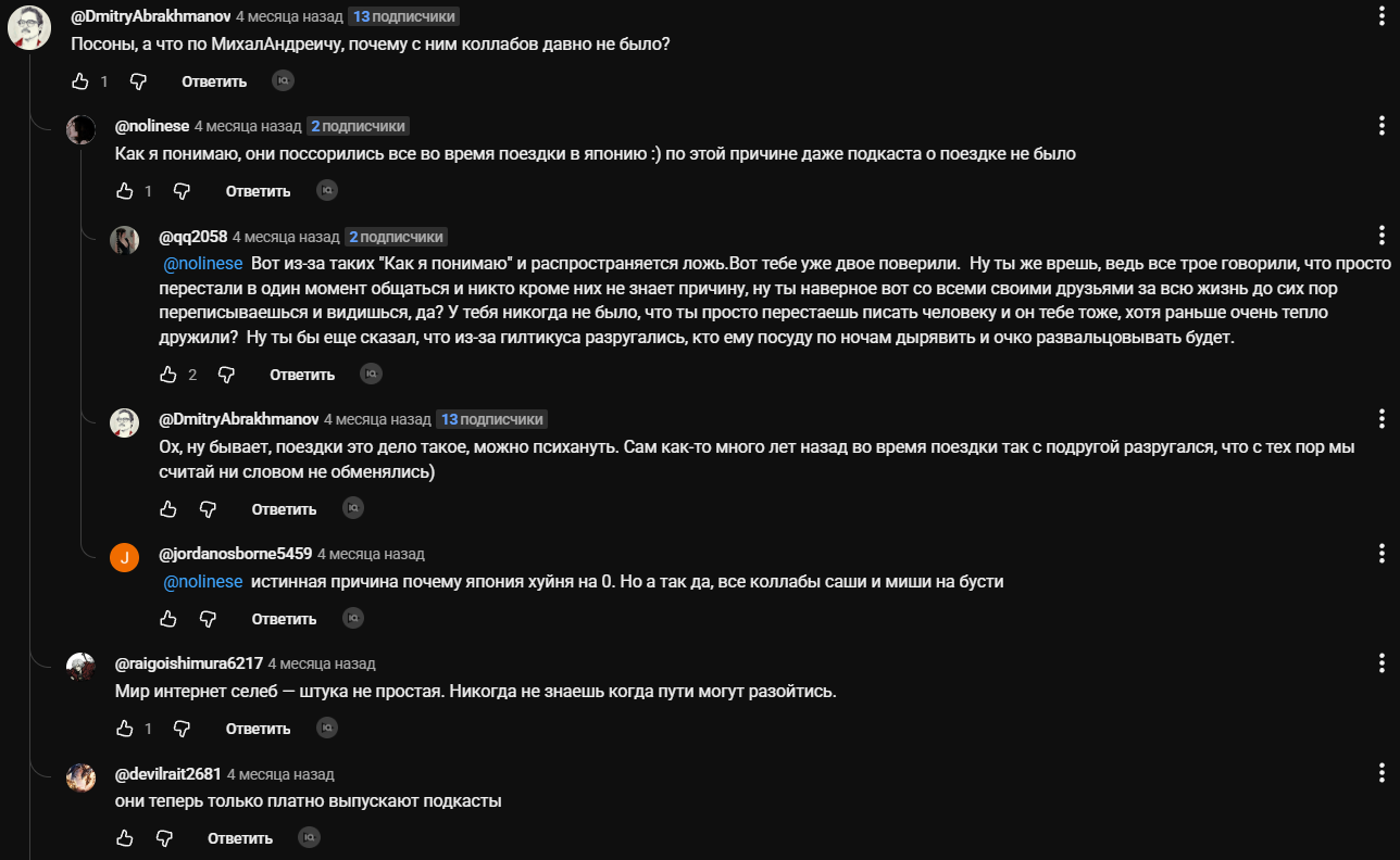 Ёб твою душу, почему вы на полном серьёзе ищите какие-то проёбы у всех этих Кастомов, Либрариумов. Причём доёбы именно в словах. Всем же очевидно что в жизни, всё зависит от того кто твои друзья, а не твои какие-то принципы. Все будут один хрен смотреть очередной обзор либры или кастома. Ничего такого прям криминального сказано не было, тем более этот Гилтикус ещё до какого дедушки в Японии (обычного человека) пристал с песней из форсажа , вот это на мой взгляд пиздец. А так очередные доёбы друг друга. Не удивлюсь если это вообще всё постановка.