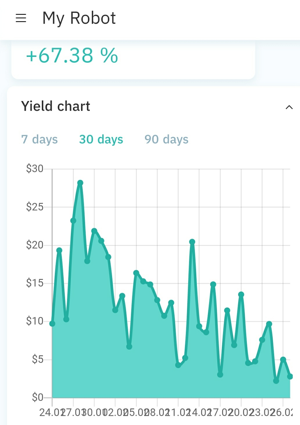 Если первый вариант, то в системе нужно держать несколько десятков долларов всего, чтобы бот никогда не выключался, а прибыль (которая по 30-40 дней идёт), потом вытаскивать и снова заливать по кругу?