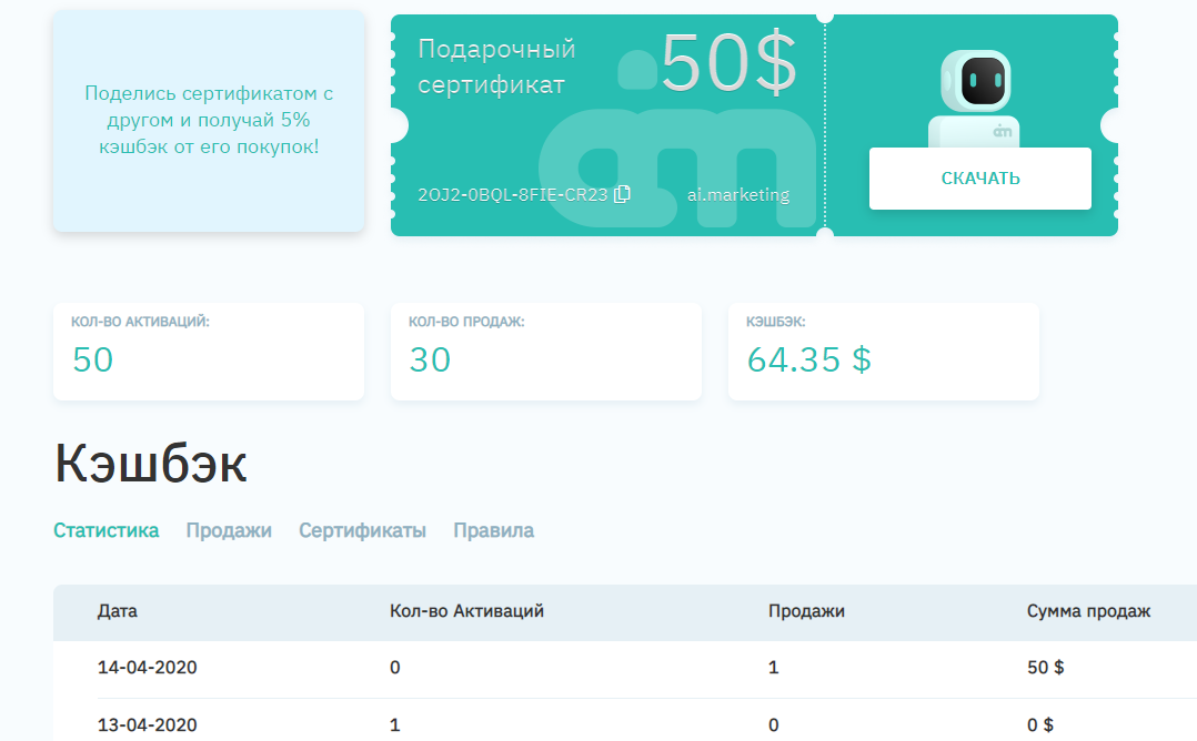 Алсо, по рефке можно активировать сертификат, дающий 50$ на рекламную кампанию, но первый вывод будет доступен только после накопления 100$ на балансе вместо 10.