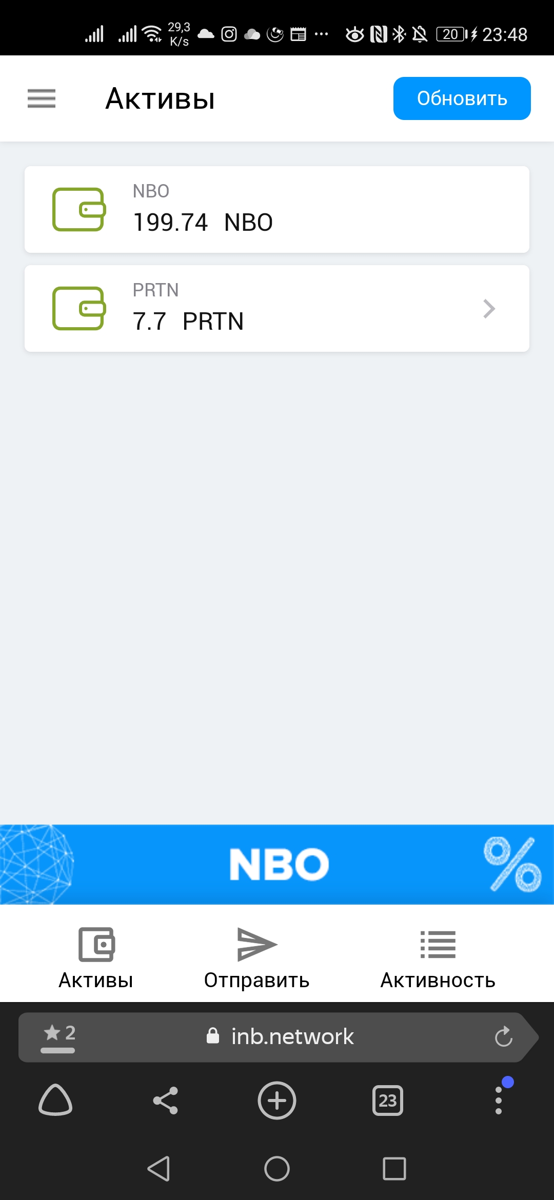 Ладно, расскажу так. В общем: 1) нужно быть зарегистрированным через inb (самый левый значок на пике 1). Если аккаунта там нет, можно завести новый через него, оставляю ссылку https://inb.network/#/?ref=bd48adf Заодно можете получить бонусные 50$ на ai.marketing по коду 2OJ2-0BQL-8FIE-CR23 , инструкция была в треде, вроде как. Насколько я знаю, заводить несколько аккаунтов не запрещено. 2) заходим в аккаунт inb.network. Там переходим во вкладку "активы" и нажимаем на синюю плашку "купить nbo" (пик 2). 3) мы перешли на биржу. Там выбираем "купить". Находим в списке продавцов подходящую сумму и цену (1 nbo будет равняться 1$ бонуса при пополнении) (лучше выбирать продавца онлайн, заявка обработается быстрее), далее следуем инструкции. Как только ваша заявка выполнится, вы увидите во вкладки активов в inb network ваши фантики nbo. 4) пополняем баланс на ai.marketing и следим за тем, чтобы nbo хватило. 5) ждём пока средства перейдут в работу. 6) наслаждаемся!