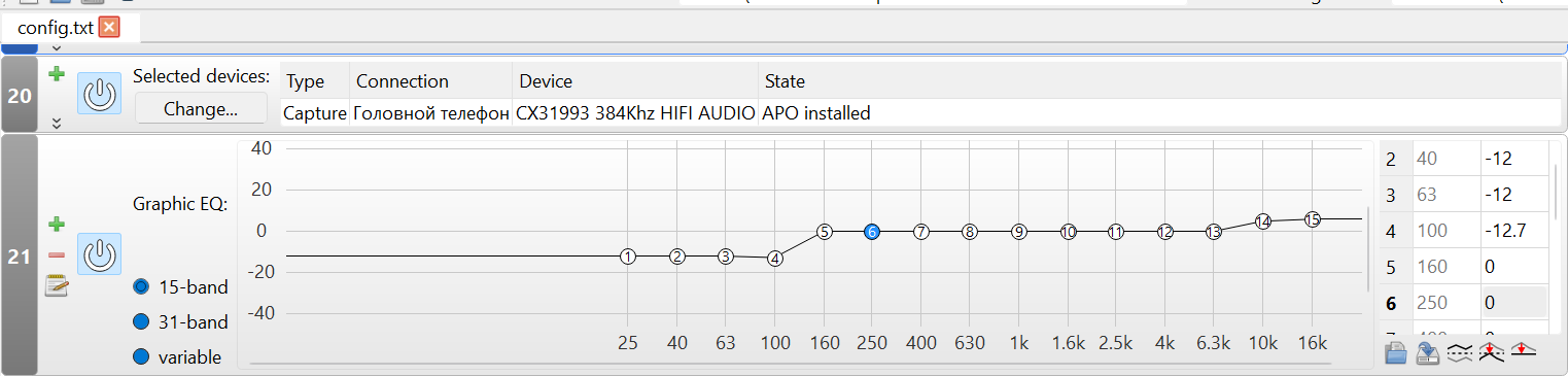 >>7596809 Да Выбираешь девайс к которому хочешь применять эффекты, ниже добавляешь блоки/фильтры которые нужно применить к девайсу (например графический эквалайзер, или vst плагин)