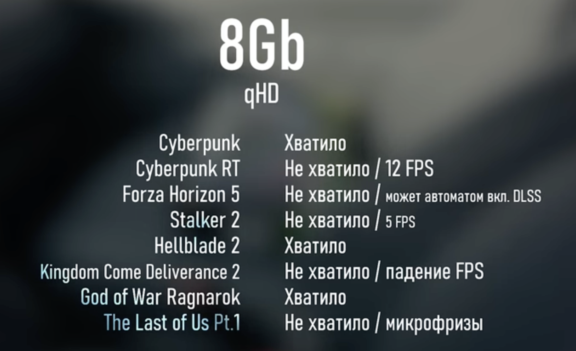 Я правильно понимаю что у 5070ти и 5080 всего 16гб видеопамяти? ВСЕГО ШЕСТНАДЦАТЬ ГИГАБАЙТ. У 5070ти должно быть хотя бы 18, а лучше 20гб, а у 5080 24, но никак не 16. Тем более что 5080 это карта для 4к, но в 4к 16гб УЖЕ НЕ ХВАТАЕТ НЕСКОЛЬКО ЛЕТ. Вот вам пример как карточка захлебнулась как только вышла за свои 16гб, конечно у 5080 ситуация будет получше ведь там и память побыстрее и линия псины х16 (у меня так вообще четвёртая псина что ещё больше усугубляет ситуацию). На видеорелейтед в меню мы видим что потребление рамы 15гб (именно рамы, не видео памяти), но как только игра снимается с паузы идёт очень продолжительный фриз и внезапно потребление рамы подскакивает почти до 20гб. В моменте когда стало 2фпс ситуация уже полностью вышла из под контроля потому что это не настоящие 2фпс, в реальности там 0.5 фпс да ещё и рваные, что и видно на видео.