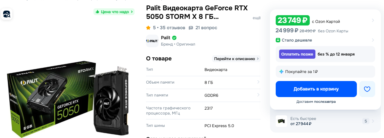 >>7540701 Я с нуля собирать буду, мне пока некуда ставить. Беспокоит момент с покупкой на маркет плейсах в качестве товара. Вдруг нерабочий прийдет или сломанный, возвраты и все связанное с этим. >>7540723 К новому году надо собрать, так что пока можно подождать, но суперы наверное дороже будут, не знаю даже. >>7540724 Искать где дешевле нормальная практика, учитывая разницу в стоимости 10к между днс и ВБ.