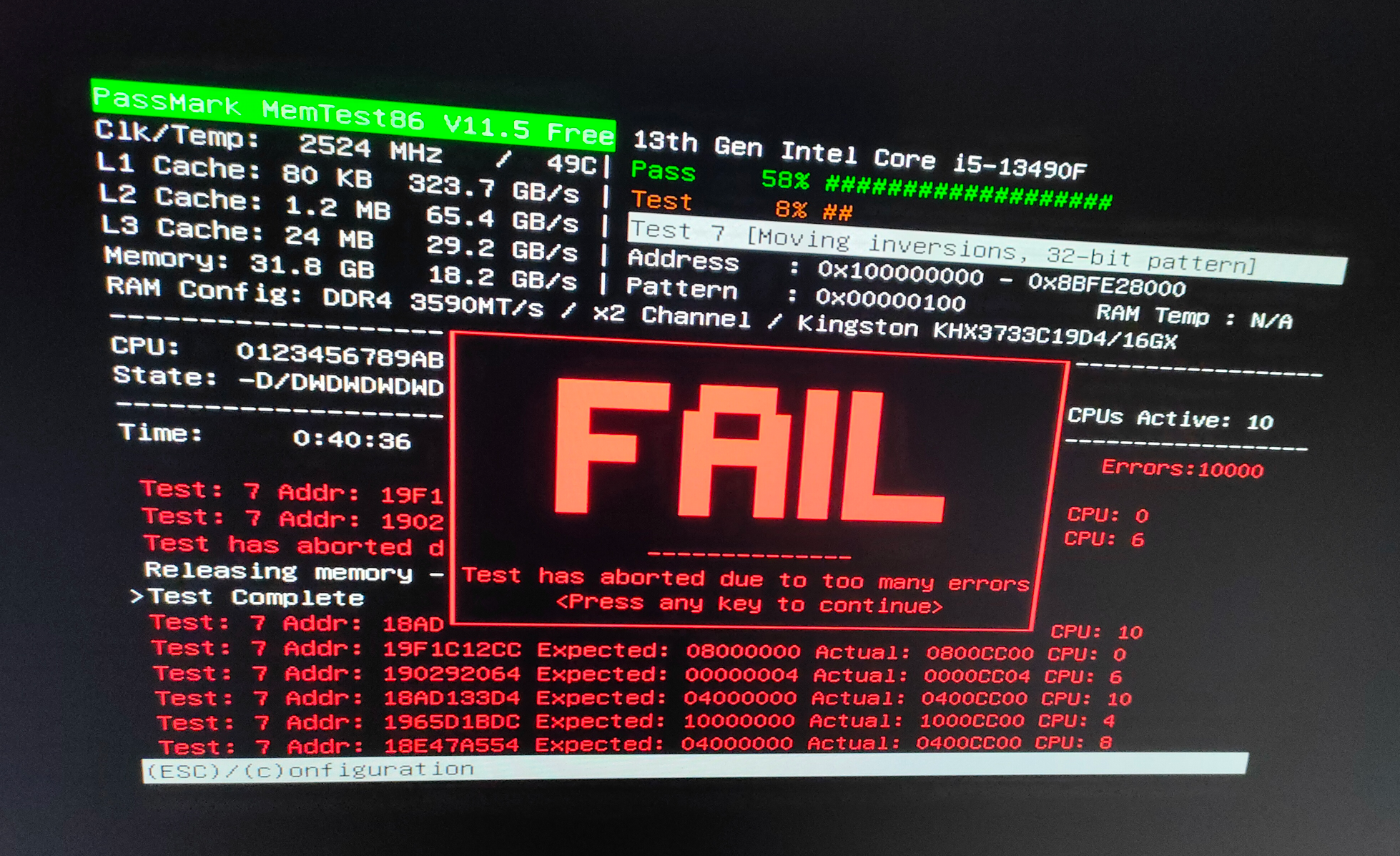 >>7546459 Отлично! Прогнал мемтест86 и нашел виновника ГОВНА. Получается это память, которую я купил в сентябре? И стандартная проверка винды это не заметила?