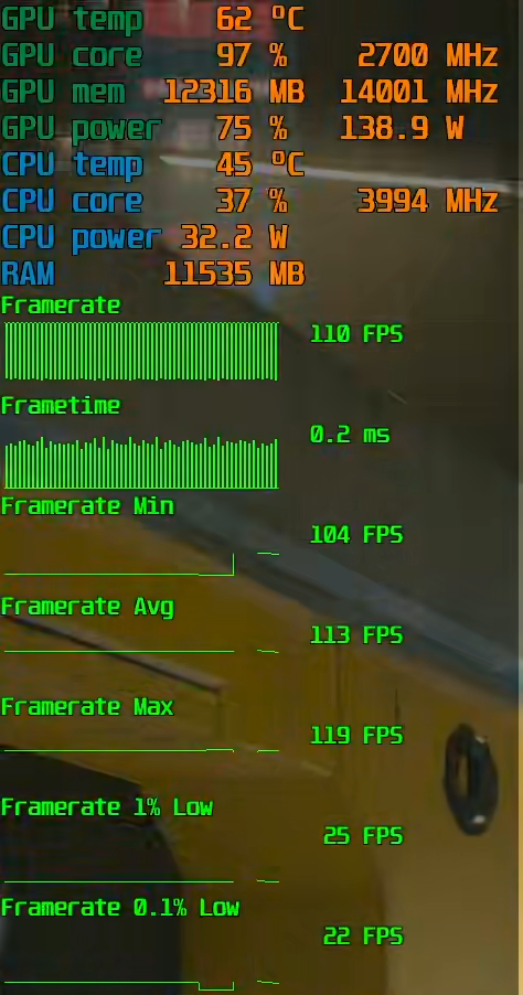 >>7543216 А, там просто фреймлимит работать остался вместе с фреймгеном и было 160 вместе с 4х вместо 250. На 250 нормально, если мега быстро не крутить мышь.