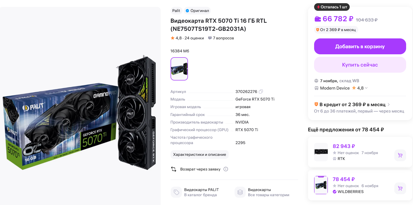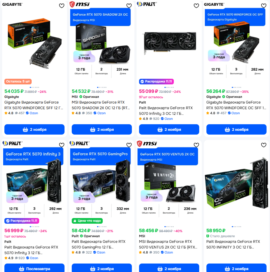 >>7540677 >А ещё на ВБ дешевле чем в ДНС на 10к Как ни парадоксально вб - вариант для богатых, которые покупают картонку не на последние и могут себе позволить отсутствие вменяемой гарантии. >Когда брать 5070ти? Нужна сейчас - брать сейчас, к новому году цена наоборот вырастет, спрос поднимется.